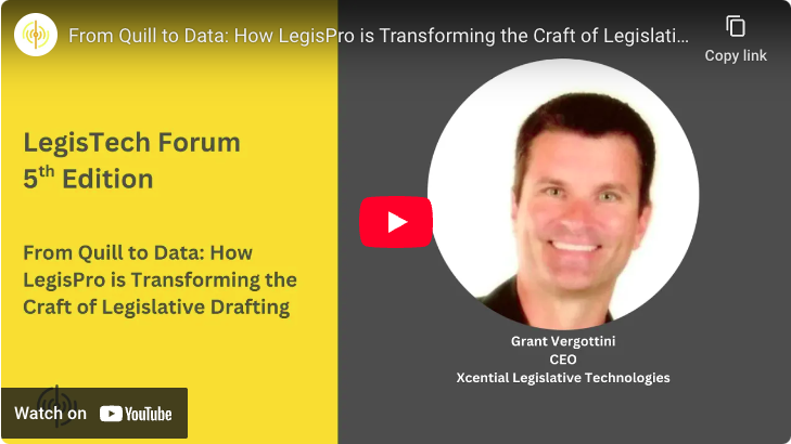 Watch Grant Vergotinni demo LegisPro and reveal the future of law-making. See exactly how Akoma Ntoso and LegalDocML replace traditional drafting methods to cut errors and streamline legislative processes.